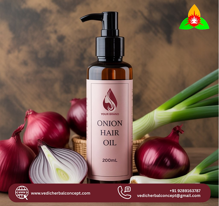At Vedic Herbal Concept, we offer a premium range of onion hair oils that combine tradition with advanced formulation techniques to deliver visible results. Our onion oil is extracted from fresh, sustainably sourced onions and infused with other beneficial herbs and carrier oils like coconut, castor, argan, and bhringraj to enhance its potency. Free from mineral oils, silicones, parabens, and synthetic fragrances, our products are designed to be gentle on the scalp while delivering powerful nourishment.